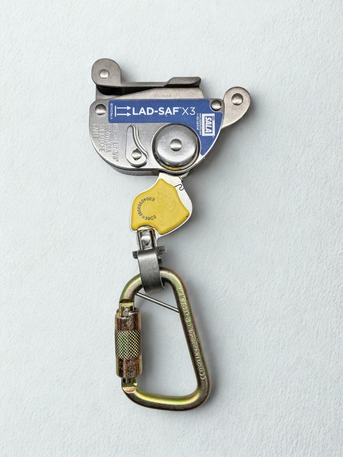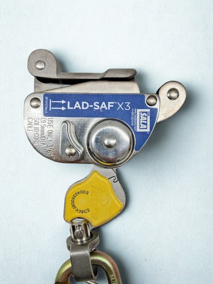 The 3M 6160054  DBI-SALA Lad-Saf X3 is a high-quality detachable cable sleeve for fixed ladder safety systems. It lets you move around without using your hands and stops falls right away on 3/8-inch solid core cables. This tough device makes it safer for workers to climb by automatically following them and locking securely when they fall.