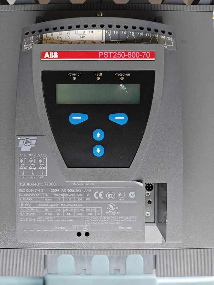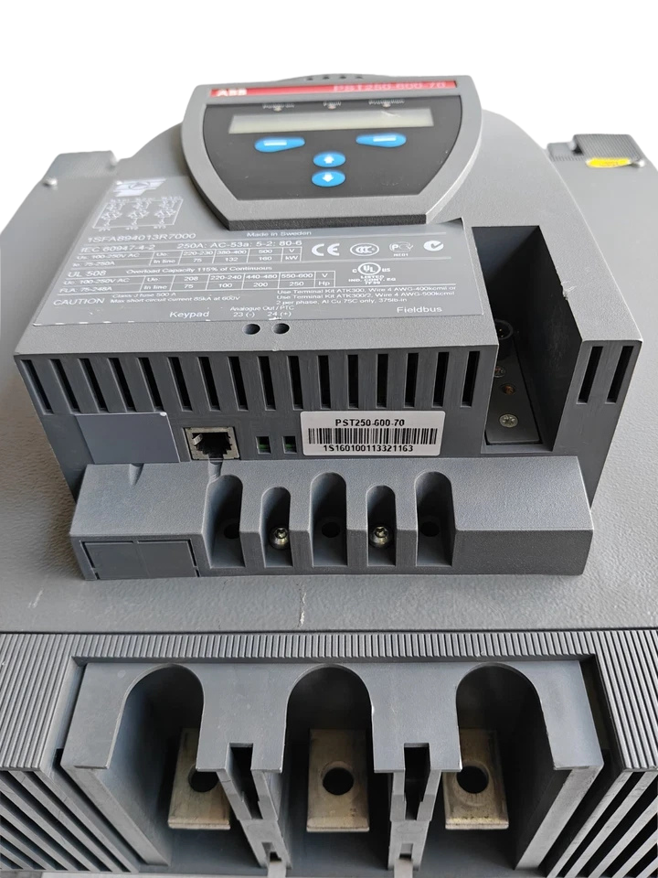 Model Designation:Â PST250-600-70, part number 1SFA894013R7000 from ABB’s PST series softstarters.