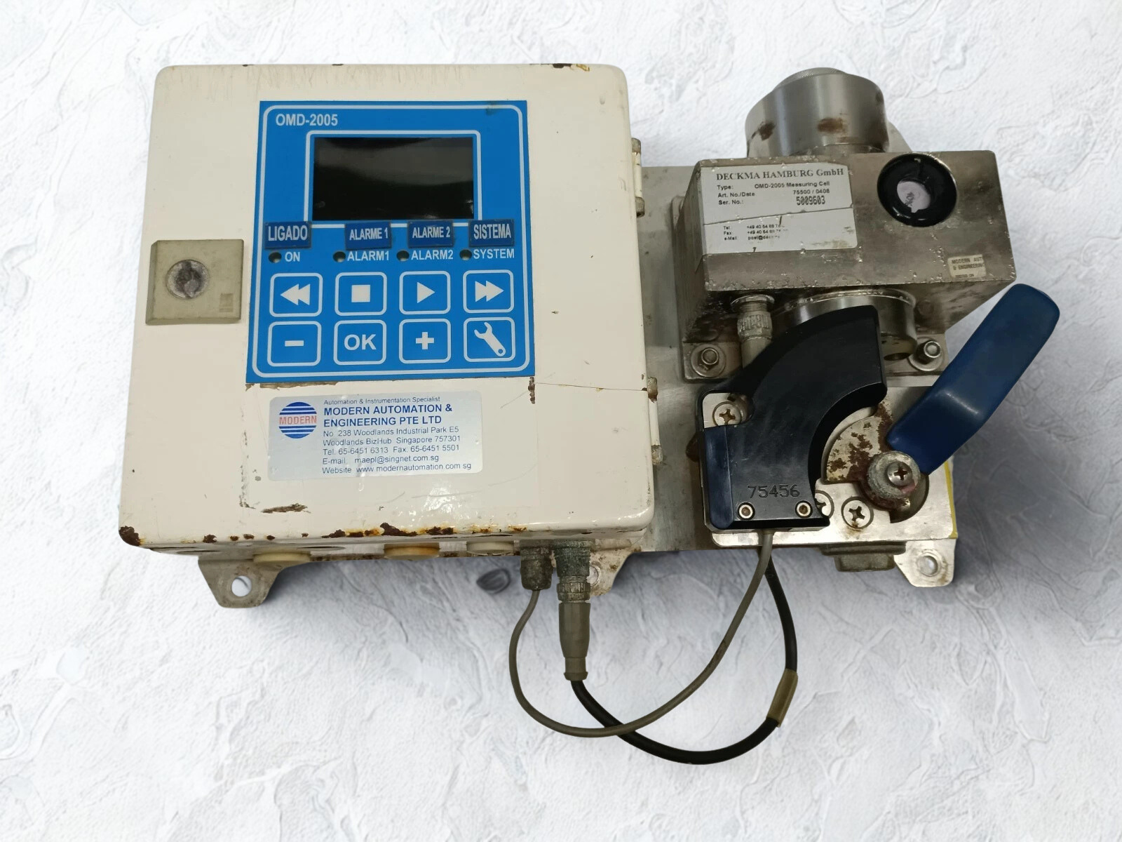 The DECKMA HAMBURG GmbH OMD-2005 Measuring Cell is an optical measuring unit made just for the OMD-2005 15 ppm bilge alarm oil content monitor. It comes with factory calibration and a certificate that shows it meets maritime pollution control standards.