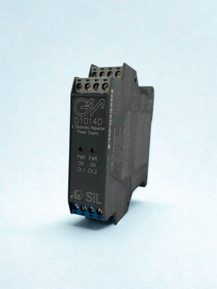 -> The D1014D repeater takes the signals from transmitters, repeats them, and changes them. This makes it safe for process instrumentation and control systems that need SIL 2 certification and compliance with hazardous areas.