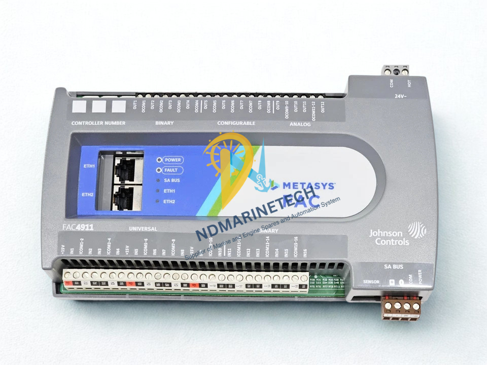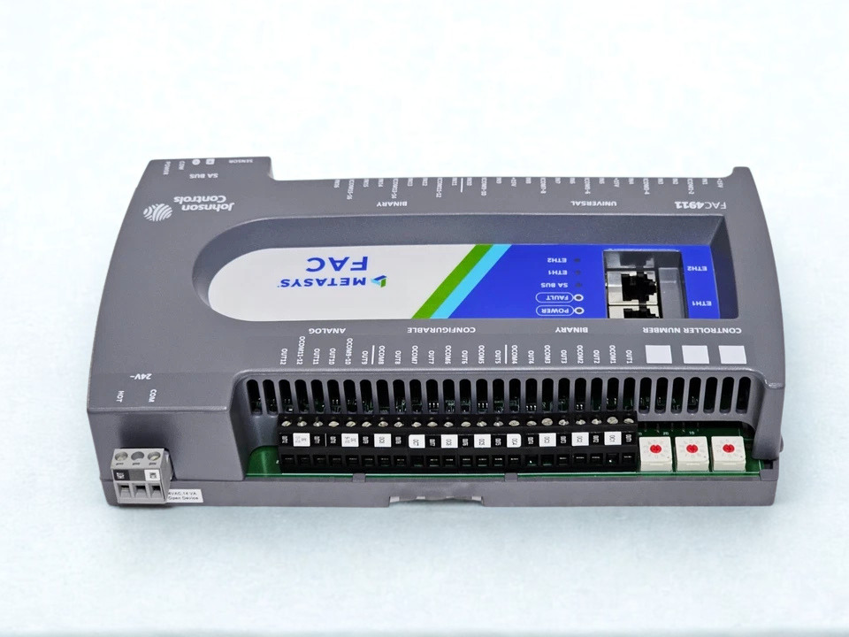 The MS-FAC4911-0 is one of the best Metasys field controllers. The FAC series has high-speed 100 Hz pulse counters and improved 15-bit resolution for precise analog sensing, which is not found in ordinary controllers. Revision B of this model has 28 I/O ports built in, including universal inputs and adjustable outputs. This makes it one of the most flexible controllers in the Johnson Controls catalog for managing central plants and big air handling systems.