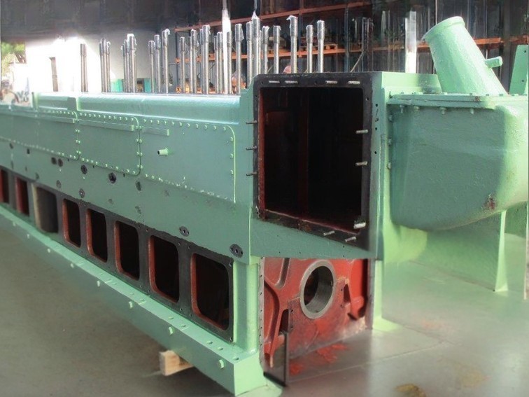 This engine frame works with 5L, 6L, 7L, 8L, and 9L28/32H generator and propulsion sets. This makes it a useful replacement part for many MAN B&W installs. It is usually used to fix engine blocks that are badly worn or broken, to improve older units, or to rebuild used engines that have been recycled from ships or power plants.