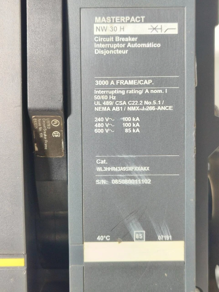 MasterPact NW30H 3000A 3P Air Circuit Breaker Description: