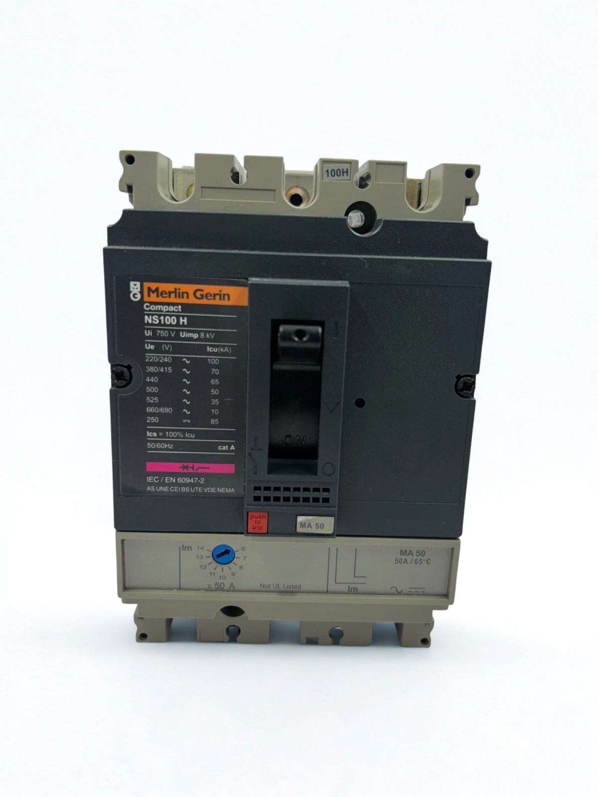 The Merlin Gerin NS100H is a high-performance molded case circuit breaker made for protecting electrical systems in businesses and factories. The Compact NS series from Schneider Electric (formerly known as Merlin Gerin) includes this product. It is often used to protect circuits against overloads and short circuits. ​