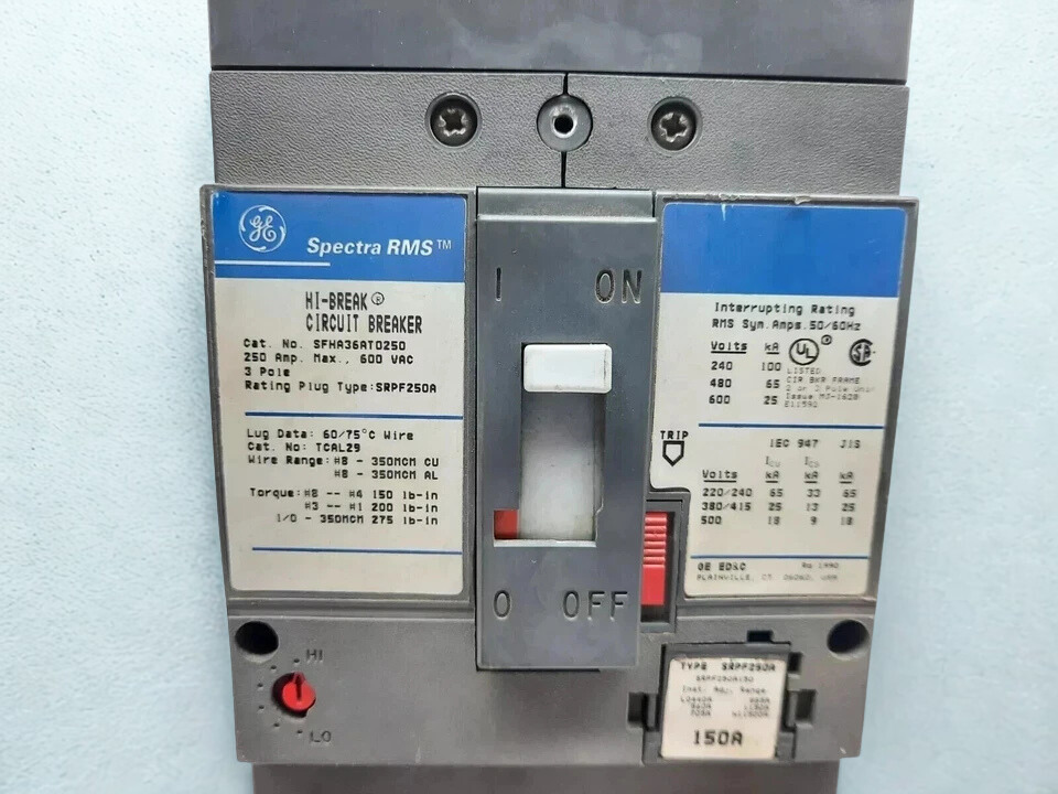 The GE SFHA36AT0250 is a high-performance molded case circuit breaker from the Spectra Series. It is made to be well protected under tough conditions. This breaker has solid state protection, which makes it safe for industrial and commercial use when there is too much current or a short circuit. The breaker is rated for 250A, 3 poles, and 600VAC, making it suitable for demanding power distribution applications.