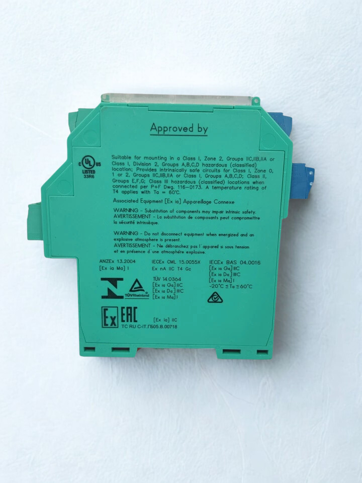 The Pepperl+Fuchs KFD2-STC4-Ex1 is a high-performance 1-channel isolated barrier made to power smart transmitters in dangerous places. It makes sure that signals can safely travel from dangerous areas to control rooms and works with protocols like HART, BRAIN, and Foxboro.