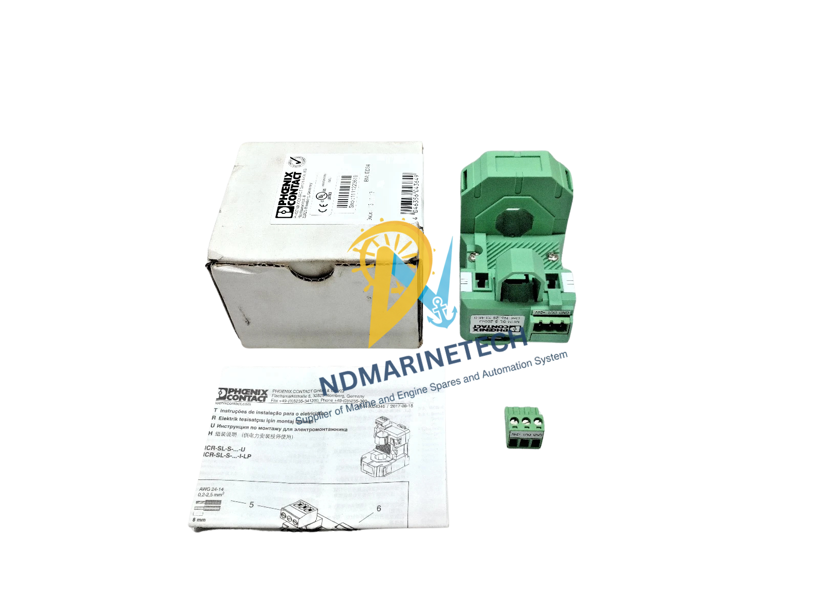 The Phoenix Contact MCR-SL-S-200-U (2813460) is an excellent choice for measuring both sinusoidal and non-sinusoidal alternating currents, as well as direct currents. This models distinguishing feature is its clamp-on or split-core design. Unlike traditional transducers, which require you to disconnect heavy-gauge cabling before sliding a sensor on, this unit opens up to wrap around existing conductors. This greatly reduces downtime during retrofits to vessel switchboards or industrial motor control centers (MCCs).