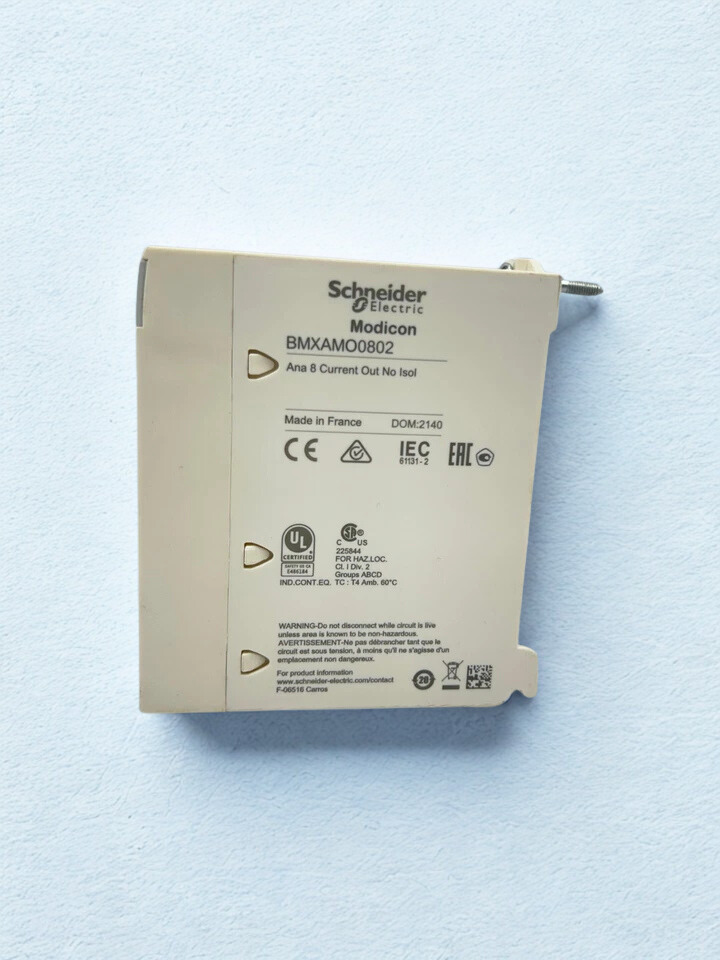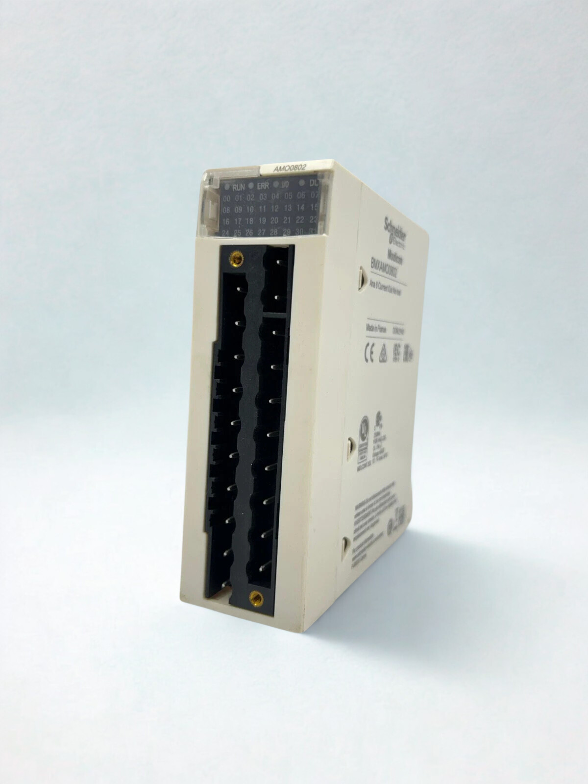 The Modicon X80 series from Schneider Electric includes the BMXAMO0802 analogue output module, which has eight channels that can output 0–20 mA or 4–20 mA. This lets you control valves, actuators, and drives accurately in tough situations. This product is made for Modicon M340 and M580 PACs. It has rapid 4 ms conversion speeds and built-in diagnostics that make it easy to add to PLC systems. Its small size (IP20 rating) and Green Premium sustainability make it a strong choice for e-commerce stocked industrial parts.
