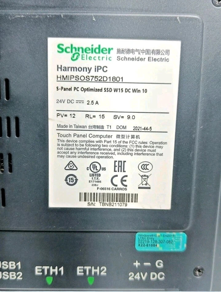 Schneider Harmony IPC HMIPSOS752D1801 S-Panel PC, 15.6″ SSD, Win 10