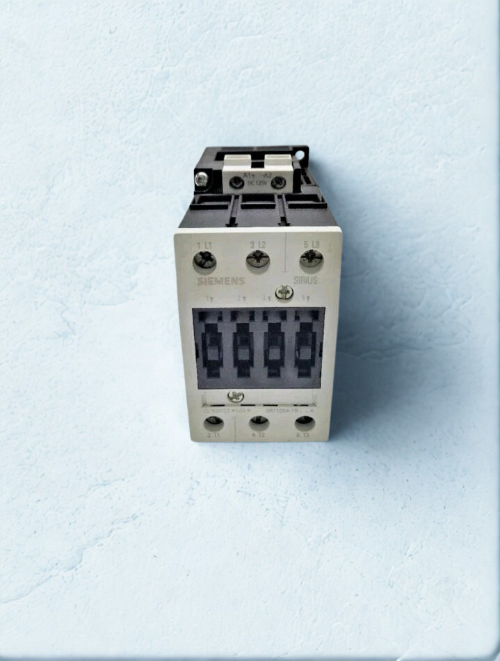 The Siemens 3RT1034-1BG44 is a heavy-duty 3-pole power contactor from the well-known SIRIUS motor control series. It is made to switch and regulate three-phase motors and industrial loads safely and reliably. With an AC-3 rating of 32 A at 400 V and a motor power of up to 15 kW, it is a strong solution for automation applications where starting, halting, and reversing happen a lot. The unit has a 125 V DC control coil and built-in auxiliary connections, which makes it easy to add to modern control panels and interlock systems.