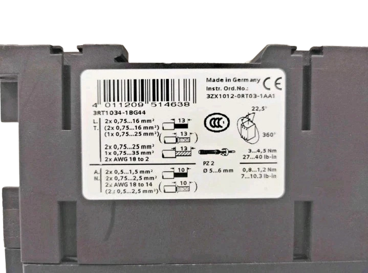 Siemens 3RT1034 Contactor Features: