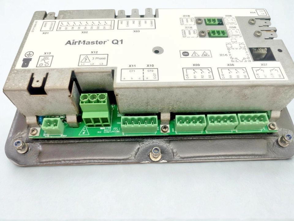 The AIRMASTER Q1 is a mid-range PLC-based controller that offers a good mix of high-end features and low cost. Its tough IP65-rated front panel makes it good for industrial platforms or engine rooms that are hard on equipment. It has a high-resolution monochrome graphic display (240 × 160 pixels) that shows real-time diagnostics, maintenance alerts, and operational data in up to 22 languages. It is an important improvement for updating older compressor units because it can handle Variable Speed Drive (VSD) management and energy-saving modes.