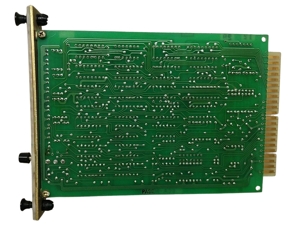 Terasaki ECA-804 industrial electronic card with its original protective anti-static storage sleeve. Front view of Terasaki ECA-804 Electronic Circuit Board showing Toshiba TC4000 series ICs and capacitors. Rear solder side of Terasaki ECA-804 PCB assembly illustrating high-quality industrial traces and gold-plated edge connectors.