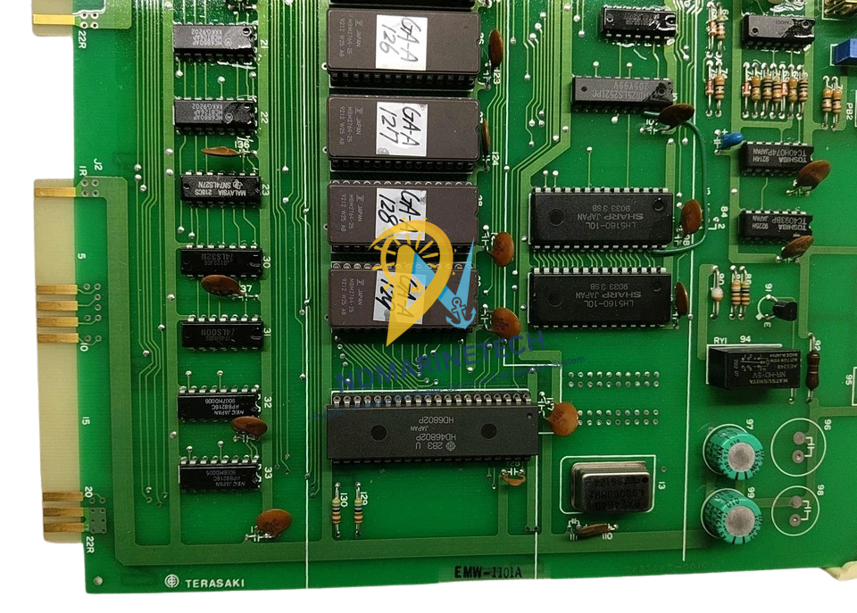 The Terasaki EMW-1101A is a specialized electronic control PCB made for industrial and marine electrical settings that need a lot of power. This board is a key part of Terasaki’s power distribution management. It is designed to work perfectly with marine-grade circuit breakers and monitoring systems, making sure that current regulation is stable and that faults are protected.